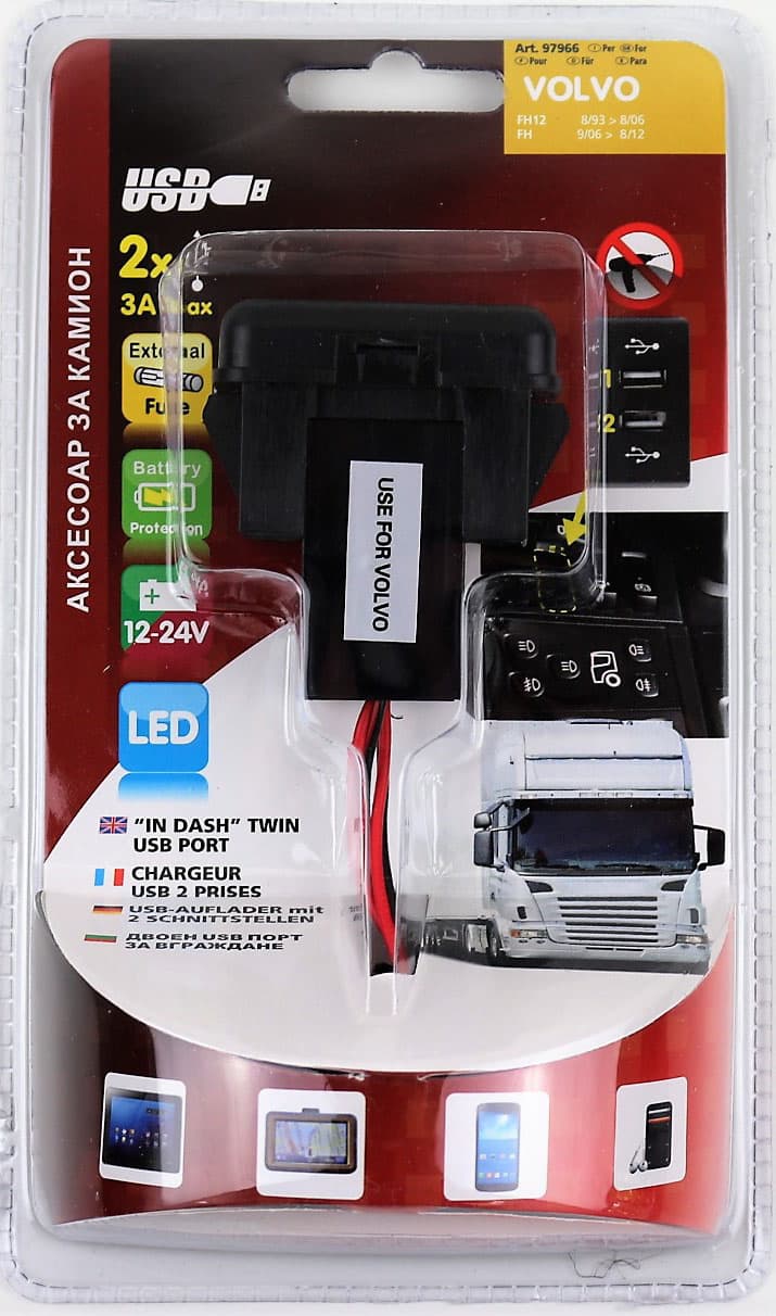Двойно USB зарядно за вграждане за камион VOLVO FH FH12 12V-24