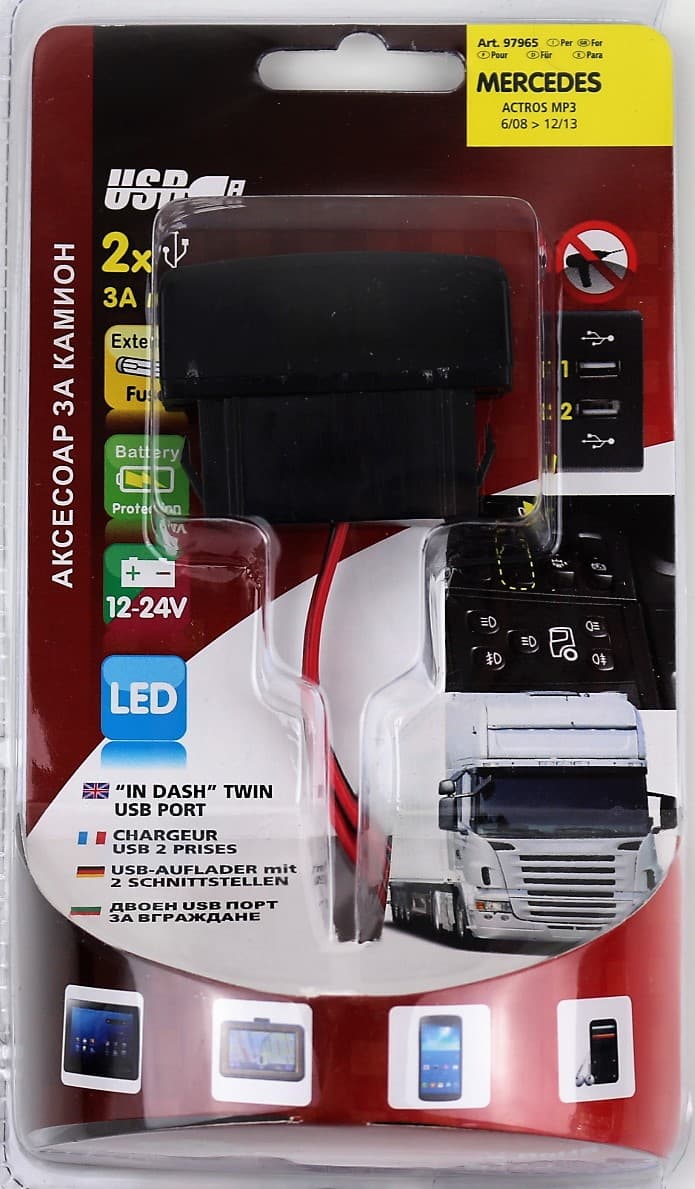 Двойно USB зарядно за вграждане за камион Mercedes Actros MP3 12V-24V